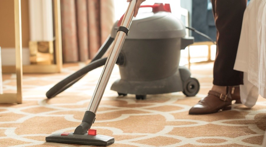 用吸塵器全面吸塵,稀釋清潔劑,也可注入水箱。在地毯上全面噴灑清潔劑,作用10-15分鐘后,污漬脫離纖維,用洗地機(jī)抽洗,操作向后行走而使每操作行有一部分重疊,最少經(jīng)過兩次抽洗,在清洗地毯的同時(shí),用吸水機(jī)吸凈已洗完的地毯,讓地毯完全干透,為加快地毯干透,可開動(dòng)地毯吹干機(jī)。